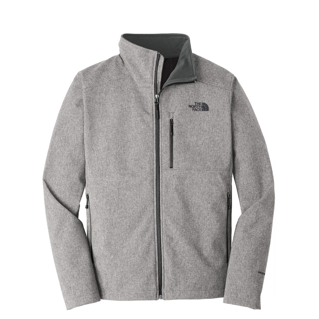 Custom logo the sleek The North Face Men's Medium Grey Heather Apex Barrier Soft Shell Jacket to increase awareness of your company at business seminars and conferences. The waterproof rain jacket provides you with a barrier against the worst Mother Nature has to offer during camping and fishing trips. Created for active professionals, the soft shell jacket that protects the most vulnerable part of your body against the worst weather conditions. Several pockets offer convenient storage spaces for your cell phone to keep you in touch with professional colleagues working hard back at the home office.