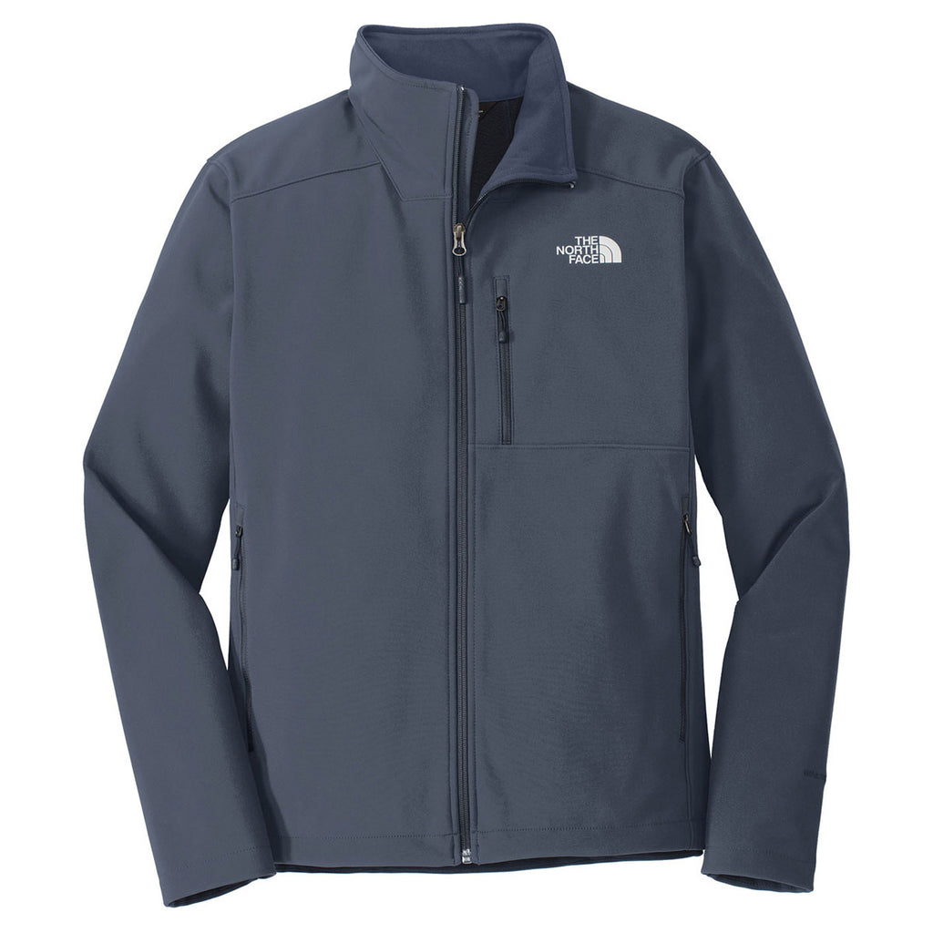 Custom logo the sleek The North Face Men's Urban Navy Apex Barrier Soft Shell Jacket to increase awareness of your company at business seminars and conferences. The waterproof rain jacket provides you with a barrier against the worst Mother Nature has to offer during camping and fishing trips. Created for active professionals, the soft shell jacket that protects the most vulnerable part of your body against the worst weather conditions. Several pockets offer convenient storage spaces for your cell phone to keep you in touch with professional colleagues working hard back at the home office.