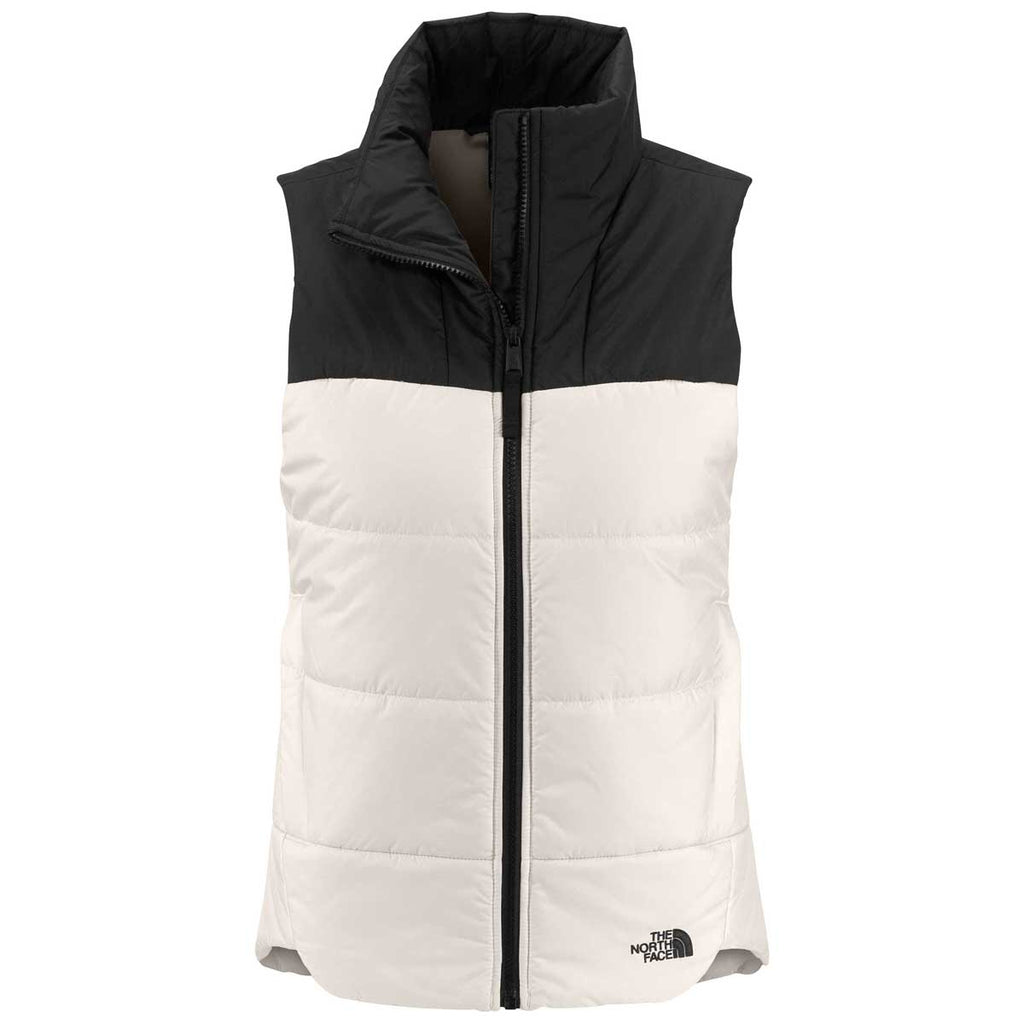Be ready for adventure in The North Face Women's Vintage White Everyday Insulated Vest. This high-end color blocked vest has a contrasting front zip for a stylish design that everyone can appreciate. Add a company logo to use for those who work outdoors as a uniform piece or to give as employee gifts that can function in many environments. Made with wind repellant properties and water repellant properties, this vest keeps the core warm while enjoying the great outdoors hiking, biking, or commuting to work. The recycled materials are good for the environment and the piece itself is easily layered with almost any type shirt.