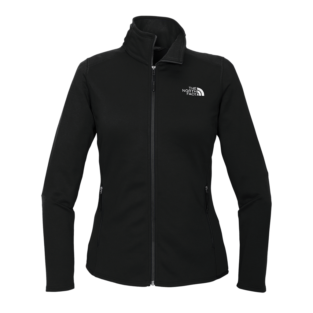 The sleek, custom look created by the custom The North Face Women's Black Skyline Full-Zip Fleece Jacket is unmatched. Add your corporate embroidery to the polyester and elastane blend to create a stellar employee gift or end-of-year gifts for loyal customers. The stretch, peached-faced custom fleece has a brushed interior for added comfort and a comfortable fit whether hitting a hiking trail or pounding the pavement selling goods. The midweight fabric helps regulate body temperature while attending team events or corporate outings. Choose a corporate embroidery that best fits your needs and place an order right away to be prepared for your next scheduled happening.