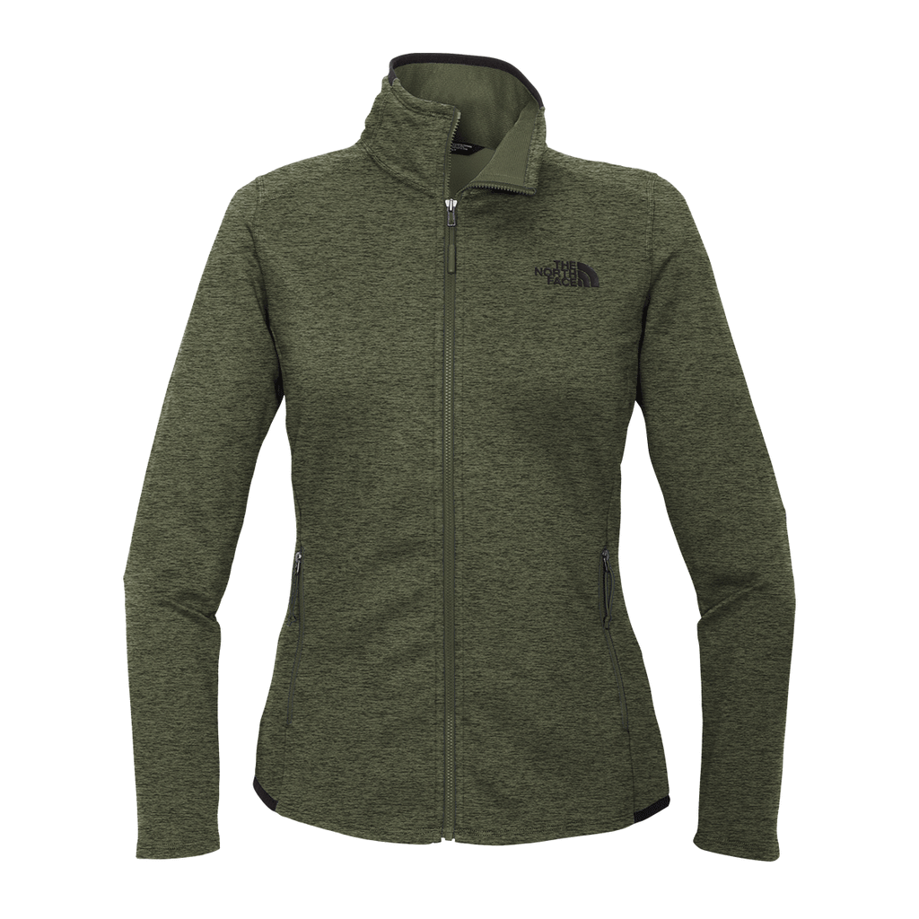 The North Face Women's Four Leaf Clover Heather Skyline Full-Zip Fleece Jacket with custom embroidery of your choice is a must have for all events. The technical stretch fleece is soft to the touch, but tough against the colder weather. Perfect for a daytime hike or a morning jog on the track, this well made jacket is a must have. Add a custom logo to use at team events as part of warm-up gear or as part of a company uniform when employees have to be outdoors on occasion. Add a company logo to the polyester, elastane jacket to offer as an end of the year gift for friends, family, and employees. The midweight fabric will help regulate body temperature with each wear.