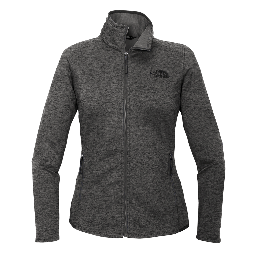The sleek, custom look created by the custom The North Face Women's Dark Grey Heather Skyline Full-Zip Fleece Jacket is unmatched. Add your corporate embroidery to the polyester and elastane blend to create a stellar employee gift or end-of-year gifts for loyal customers. The stretch, peached-faced custom fleece has a brushed interior for added comfort and a comfortable fit whether hitting a hiking trail or pounding the pavement selling goods. The midweight fabric helps regulate body temperature while attending team events or corporate outings. Choose a corporate embroidery that best fits your needs and place an order right away to be prepared for your next scheduled happening.