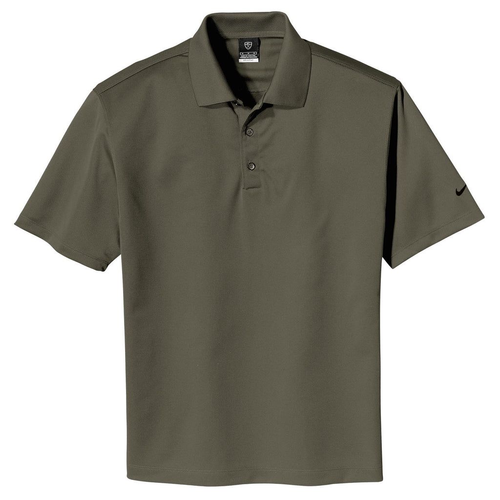 The Nike Men's Olive Khaki Tech Basic Dri-FIT Short Sleeve Polo may just be the gold standard in golf polos. Great quality, simple (yet bold) design, and at an affordable price. Additionally, it can easily be incorporated into every man's current wardrobe. Details of this men's shirt include Nike Golf's Dri-FIT moisture management technology, a knit collar, 3-button placket, and pearlized buttons. The Nike Golf Olive Khaki Tech Basic Dri-FIT Polo is available in a variety of great colors, so you'll have no trouble finding the right fit for your company or event.