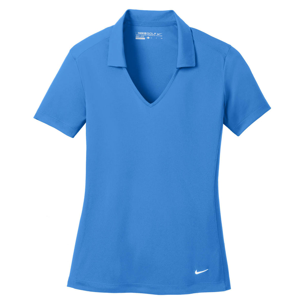 What should you except from a golf polo? Most people look for a collar and call it a day. But you're not most people. You expect more out of your polo. You expect lightweight 100% polyester fabric that's as durable as it is comfortable. You expect moisture management technology that keeps the sweat at bay. You expect a feminine fit with a Johnny collar for the most possible style. In short, you expect a polo of the quality of this Nike Women's Light Blue Dri-FIT Short Sleeve Vertical Mesh Polo. And Nike Golf incorporates the same standards into its polo, while allowing the room on the chest for your own custom embroidery or business logo.
