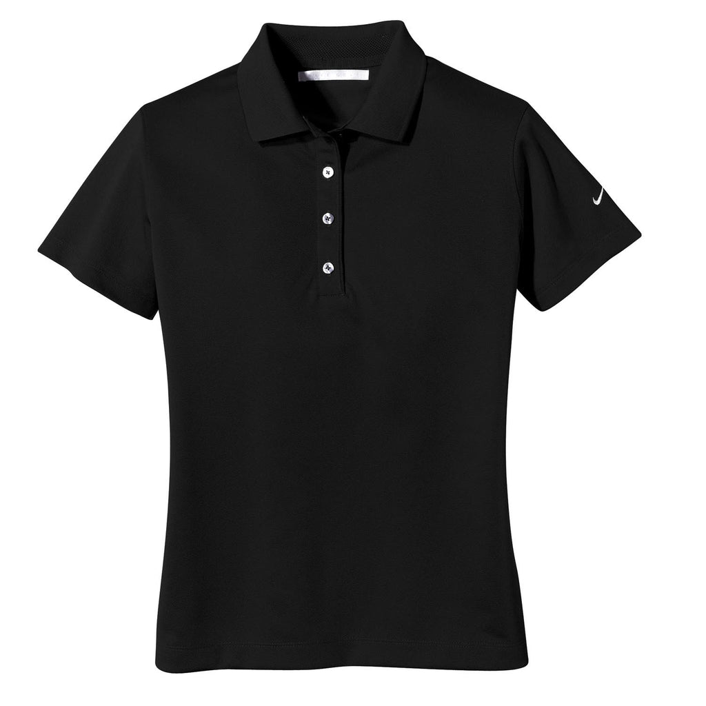 Love the sporty look of the Nike Women's Black Tech Basic Dri-FIT Short Sleeve Polo? Well, you'll like how it feels and how it fits even more. The Nike Golf Women's Black Tech Basic Dri-FIT Polo features 100% moisture-wicking polyester fabric, a knit collar, a 4-button placket, open-hem sleeves and pearlized buttons. To finish off the look, the classic Nike Golf Swoosh logo is embroidered on the left sleeve.