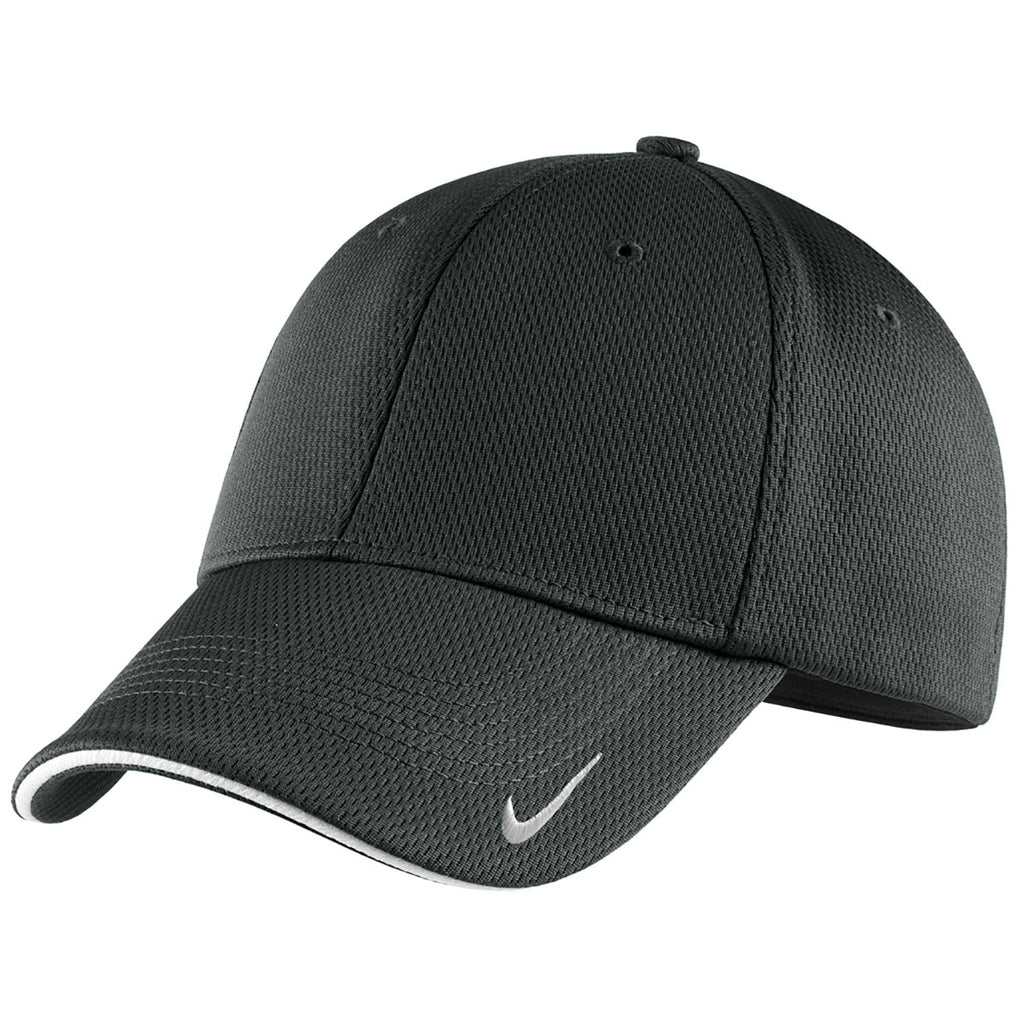 A classic corporate Nike Golf hat will never go out of style. Not only can the custom Nike Anthracite/White Dri-FIT Stretch Mesh Sandwich Bill Cap be worn out on the golf course, but it's a logo-branded cap that can easily be added to any casual wardrobe. This is a contemporary bill cap that is engineered with advanced moisture-wicking technology. It has a structured, mid-profile look to it, a Swoosh Flex sweatband to ensure an exceptional fit and a contrast Swoosh design on the bill.