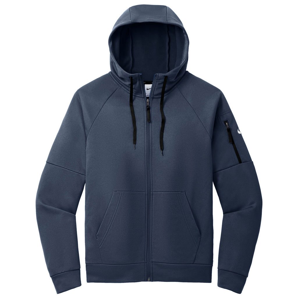 Choose custom embroidery for the Nike Men's Navy Therma-FIT Pocket Full-Zip Fleece Hoodie for a look that is ready for fun or relaxation. This interesting hoodie design with a sleeve pocket and Nike Swoosh on the left sleeve is a must-have for those who like to create a casual vibe at home or on the go. Great for special events or team gear. Place an order today.This product cannot ship outside of the United States.