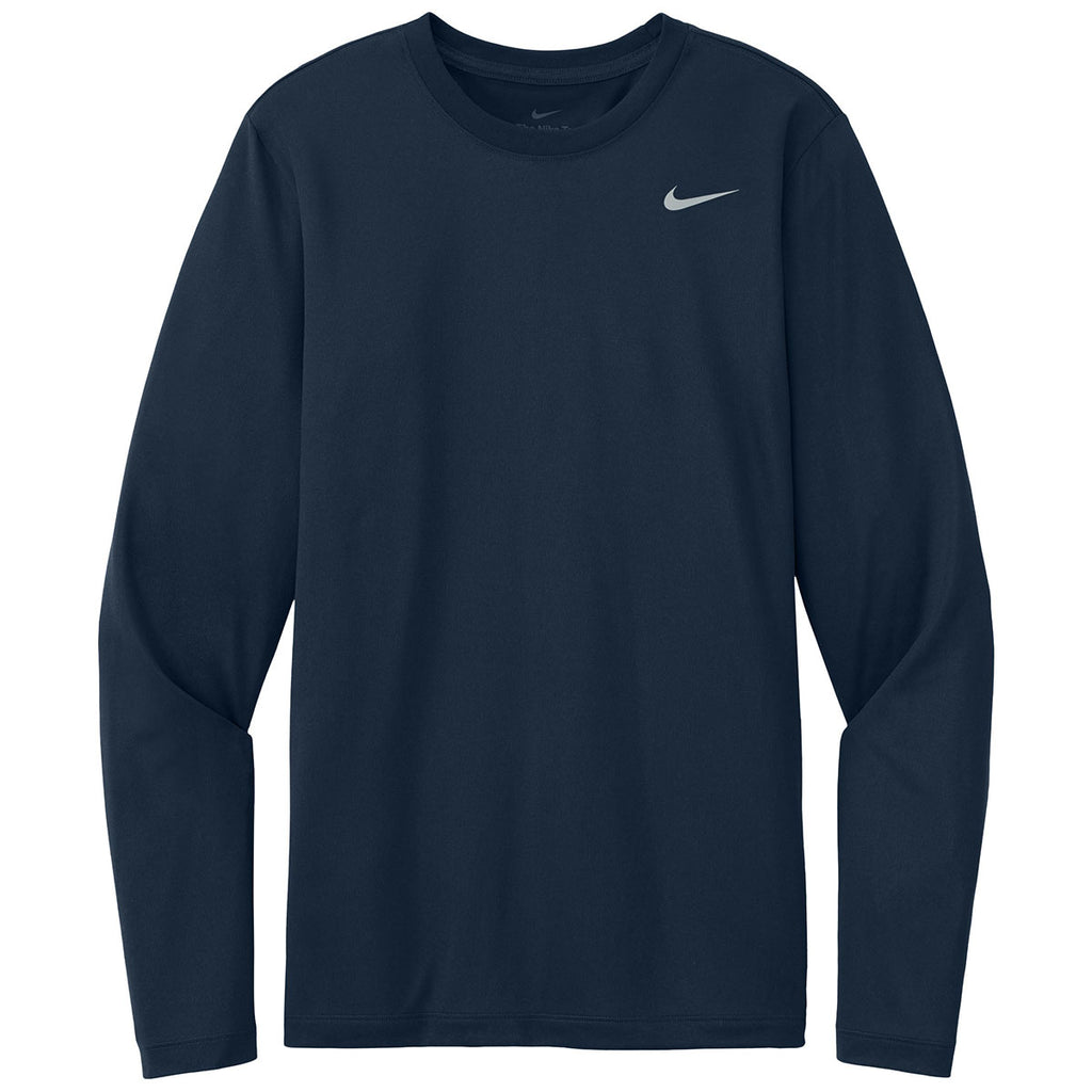 The Nike Men's College Navy Team rLegend Long Sleeve Tee is a corporate-ready performance piece with custom branding appeal. Its moisture-wicking fabric keeps wearers dry and comfortable, while the athletic fit supports active lifestyles. Embroidered or printed logos stand out against the sleek design, making it a versatile option for giveaways, team apparel, or branded merchandise.