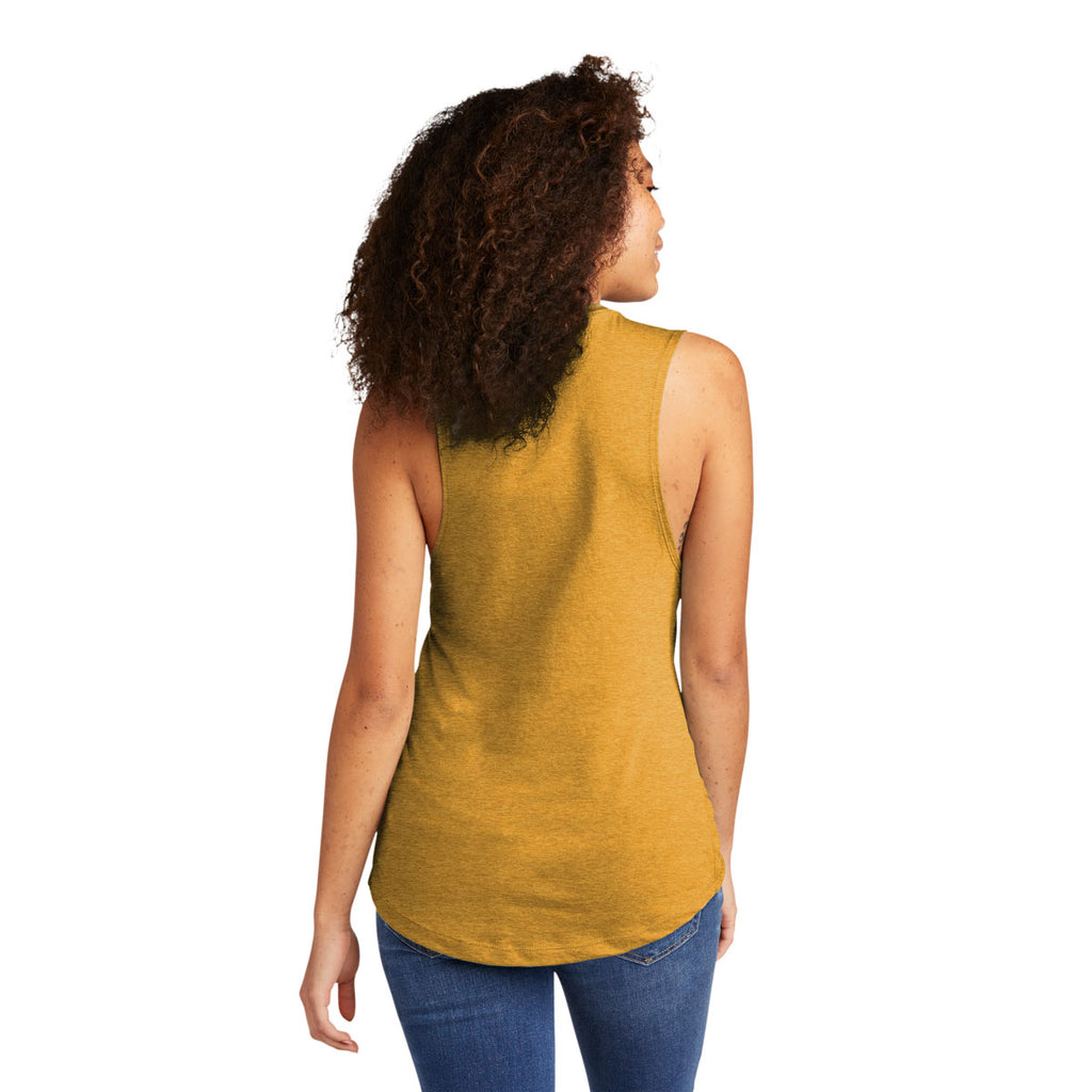 Add a custom screen print to the Next Level Women's Antique Gold Festival Muscle Tank for a fun and flirty look that many will adore. The lightweight poly and ring spun cotton blend has a rib knit neck and hemmed oversized armhole for an airy feel on those warm summer days. Add a company logo to use as a promotional item, employee gift, and much more to fit your needs. Try out something custom to build your warm weather options for a logoed apparel line. The slight drop tail hem adds coverage for this fitted tank that can go from the gym to the beach and to the club with ease.Highlights