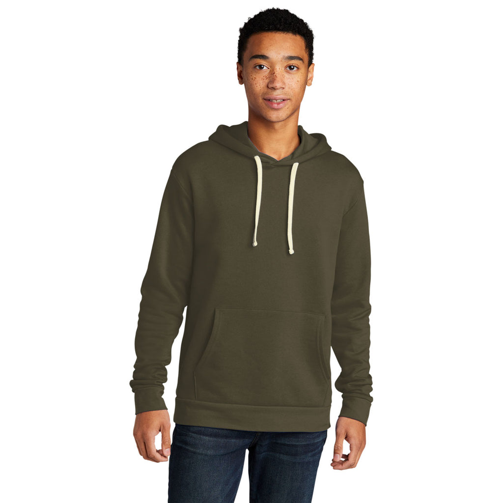 Add a custom logo to the Next Level Unisex Military Green Beach Fleece Pullover Hoodie to create a look that will be an instant favorite. This midweight cotton and poly blend is perfect for layering over your favorite tank or tee and has a cotton face for the ultimate in comfort. Add a company logo to use these as employee gifts to be worn at employee events, trade shows, or days off. The front pouch pocket keeps small items secure and the jersey lined hood offers a bit of extra protection against the wind and weather. Though a simple design, it would be popular in any logoed apparel line.Highlights