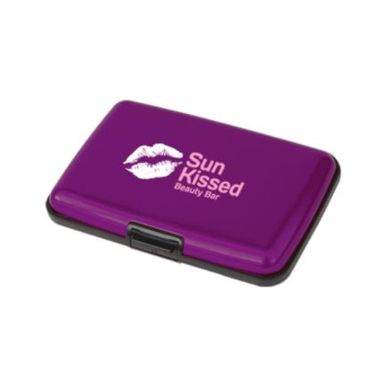 Give your employees a corporate gift they can take with them to business meetings and conferences. The K & R Purple Safeguard Card Holder offers a large area for your printed logo and is the perfect holder for business cards. It holds up to 30 cards and easily fits into pockets or work bags.
