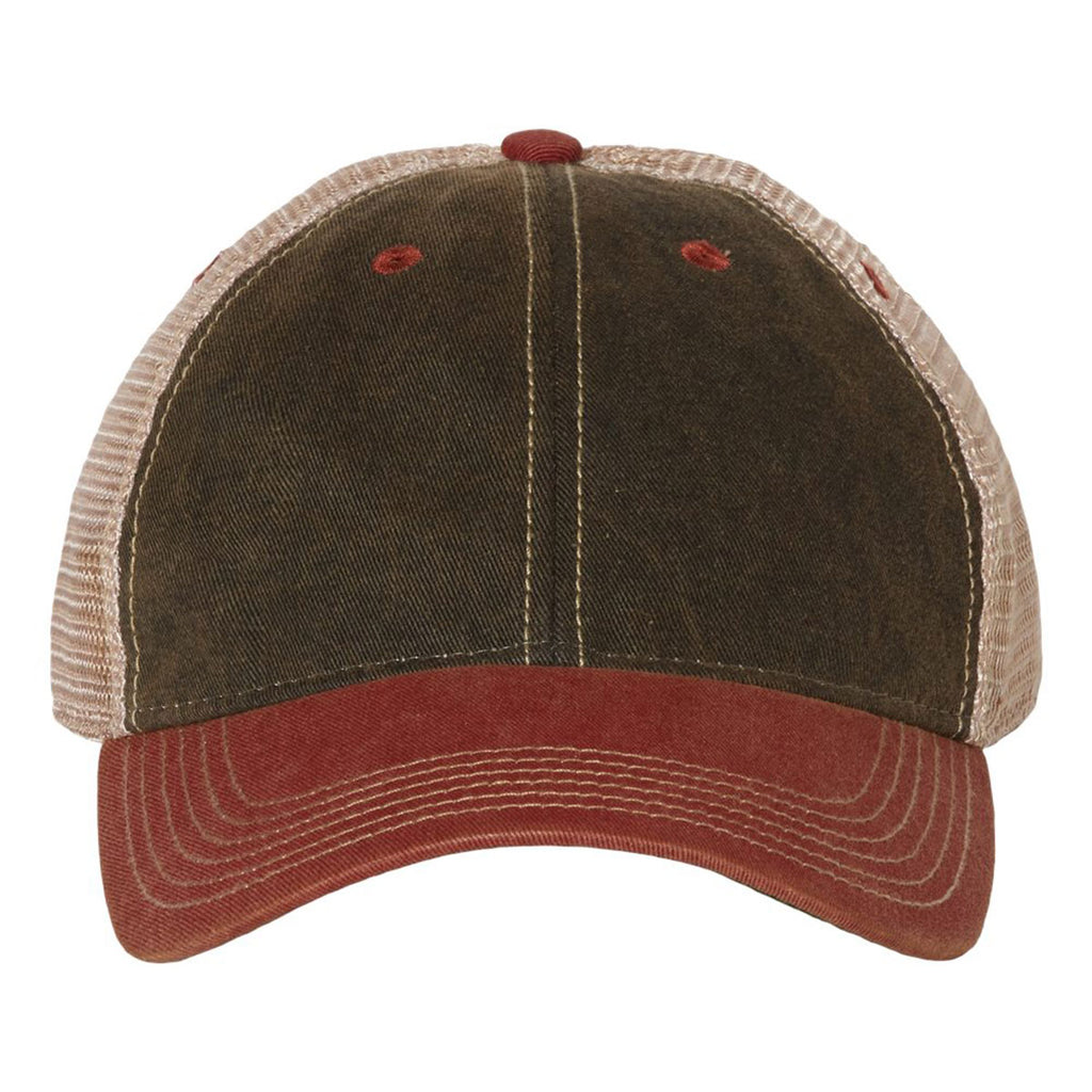 Add embroidery to the Legacy Black/Cardinal/Khaki Old Favorite Trucker Cap for a throwback look that will never go out of style. Made of a cotton polyester blend with a dirty washed cotton twill crown and mesh, this is the trucker cap everyone knows and loves. An adjustable, contrasting snapback closure is a one size fits most design that can be given as a custom gift or adorned with a company logo to use as employee apparel. Unstructured with six panels and a low profile, the pre-curved visor has a green undervisor to keep sun reflection down.Highlights