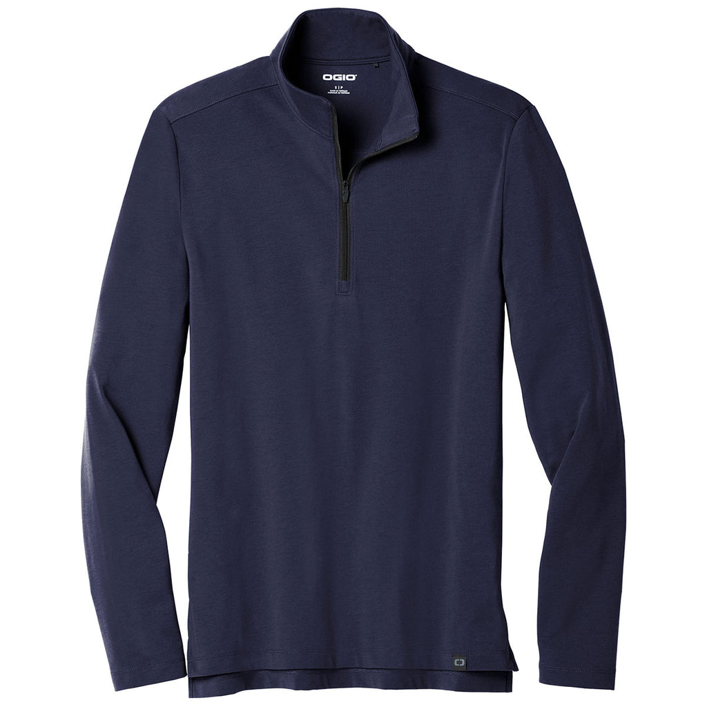With a design created for layering, the embroidered OGIO Men's Navy Limit 1/4-Zip is one of the most versatile pieces for active professionals. Wear the quarter zip over a breathable t-shirt to keep you feeling fresh all day long. As a middle layer under a winter coat, you enjoy the warmth generated by fabric trapping heat. A touch of spandex increases mobility to give you a go to jacket for recreational activities. Cotton and polyester combine to produce a super smooth feel and long lasting durability. Add your company logo on the embroidered area to put your brand under the marketing spotlight.