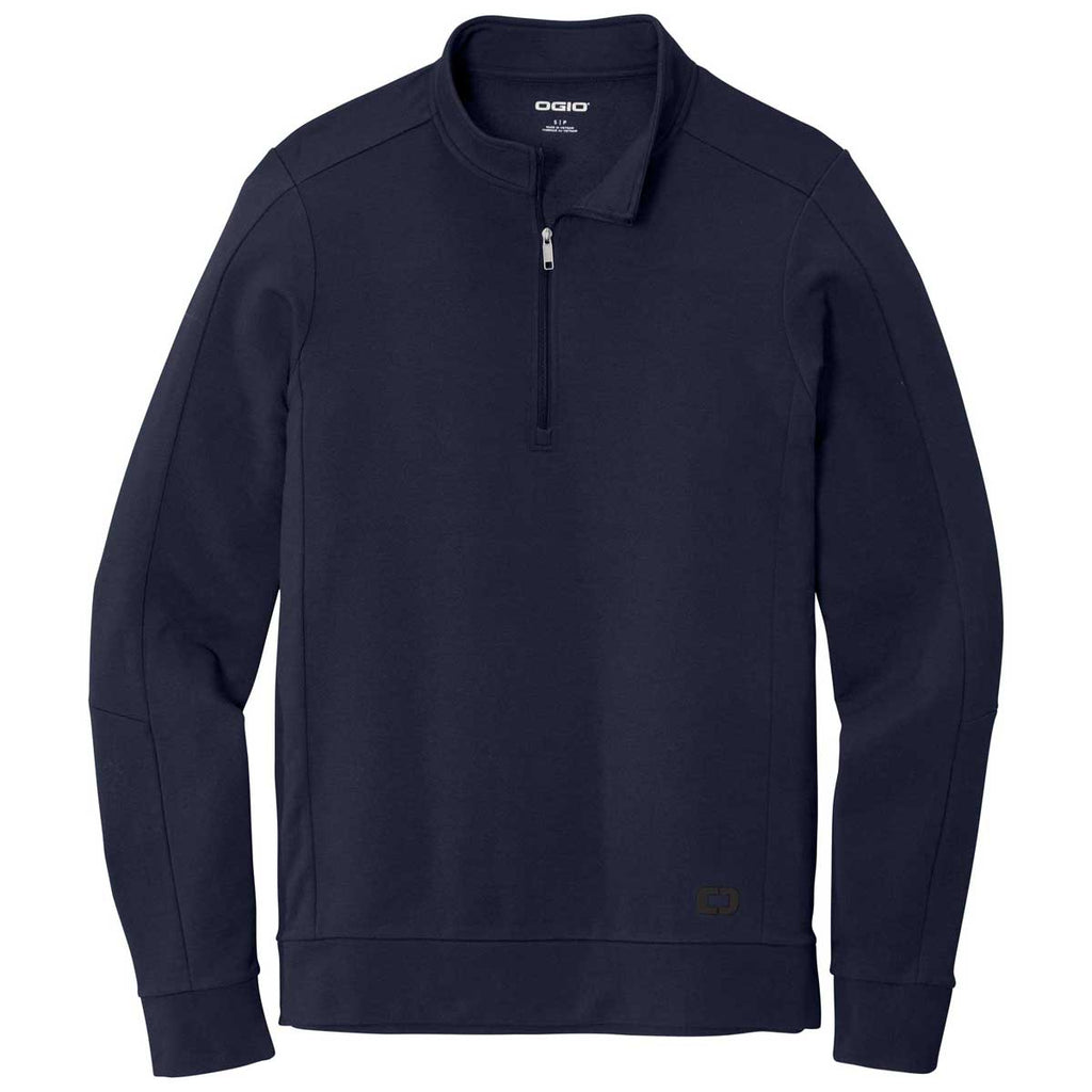 Add custom embroidery to the OGIO Men's River Blue Navy Luuma Half Zip Fleece to create a look all your own. Meant to be used as active wear, this 1/2 fleece easily goes from the gym to home and back again each and every day. Designed for comfort, the 1/2 zip has a self-fabric cadet collar, side panel details, and an open hem for comfort whether going for a quick jog or heading to the gym for hours at a time. Add a company logo to give these as employee gifts for those who work their hardest each day.