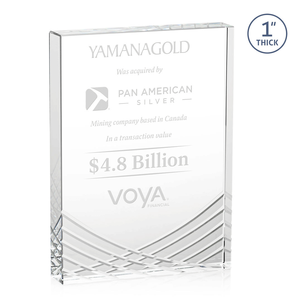 The Buchanan Optical Crystal Award is a captivating symbol of achievement and recognition. Crafted to perfection, this substantial tombstone-style piece features intricate crisscrossing grooves that exude sophistication and depth. As a striking monument to excellence, it stands as a timeless tribute to those who reach the pinnacle of success.