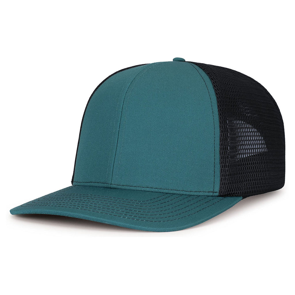 Add your corporate logo to the Pacific Headwear Deep Teal/Lt Charcoal/Deep TealContrast Stitch Trucker Pacflex Snapback Cap for a fun and simple way to showcase your brand. The iconic trucker cap is a one-size-fits-most adjustable design with mesh backing, a mid-profile, and a curved visor that is easy to wear and share, whether at a trade show, special event, or to increase customer relations. Order today.Highlights