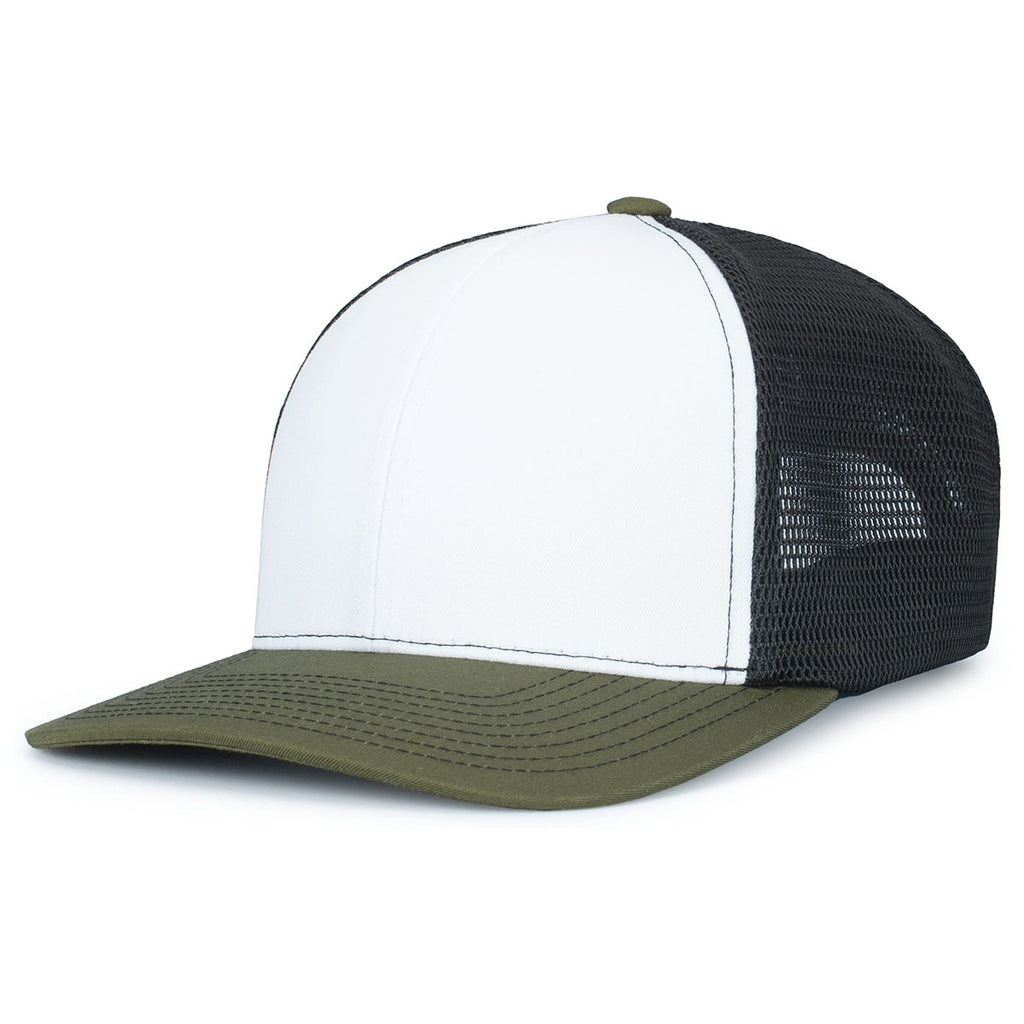 Pacific Headwear White/Light Charcoal/MossContrast Stitch Trucker Pacflex Snapback Cap