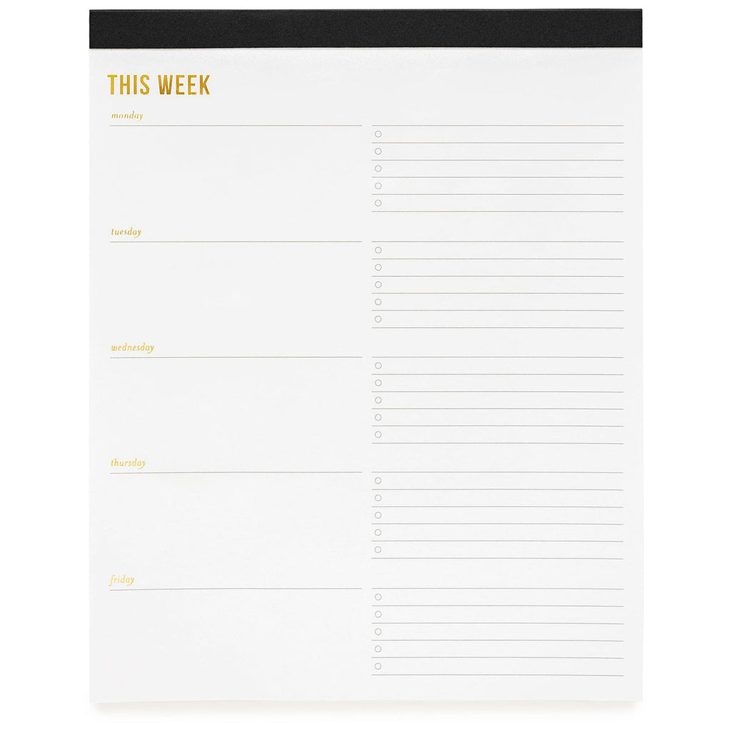 Tackle the week head-on with the help of this Sugar Paper Weekly Pad, Large, Black. Great for keeping all your meetings, plans, or family events organized, it offers space for all the week's most important events. Add your company's custom logo for a branded gift or giveaway item that is ideal for anyone with a busy lifestyle.