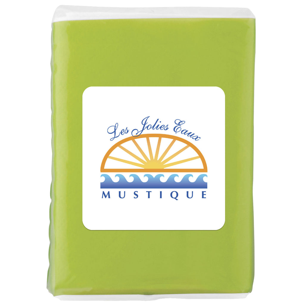 Primeline Lime Green Mini Tissue Packet What goes best with custom Primeline Mini Tissue Packets? Your company logo. That’s right – these mini hygienic packets work great as marketing tools for your brand too. They’re cute-sized, can be brought on the go and designed to bear your custom image on a re-sealable pouch – features that make a great event giveaway or employee gift.The minimum order for this product is 500 pieces.