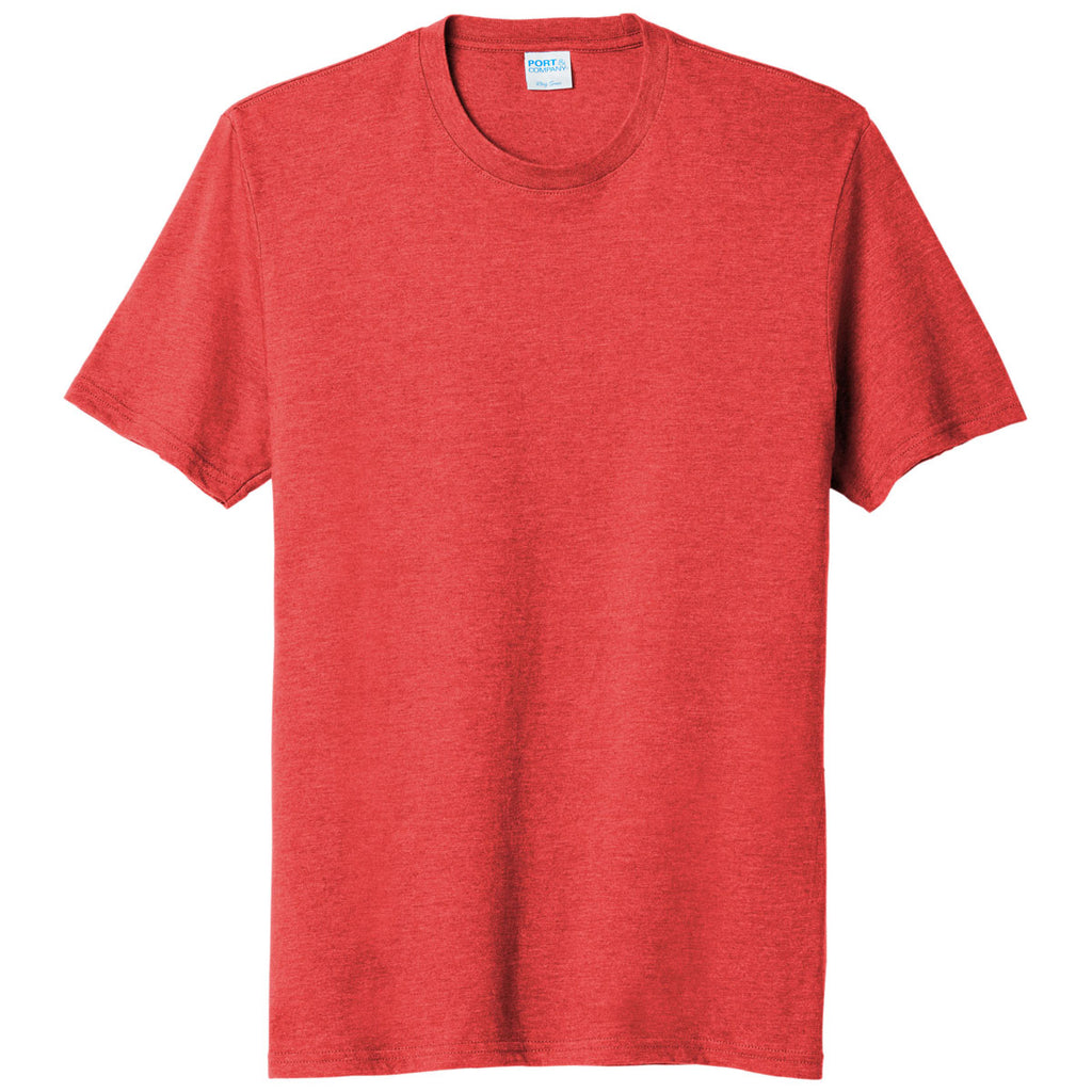 Port & Company Men's Bright Red Heather Tri-Blend Tee