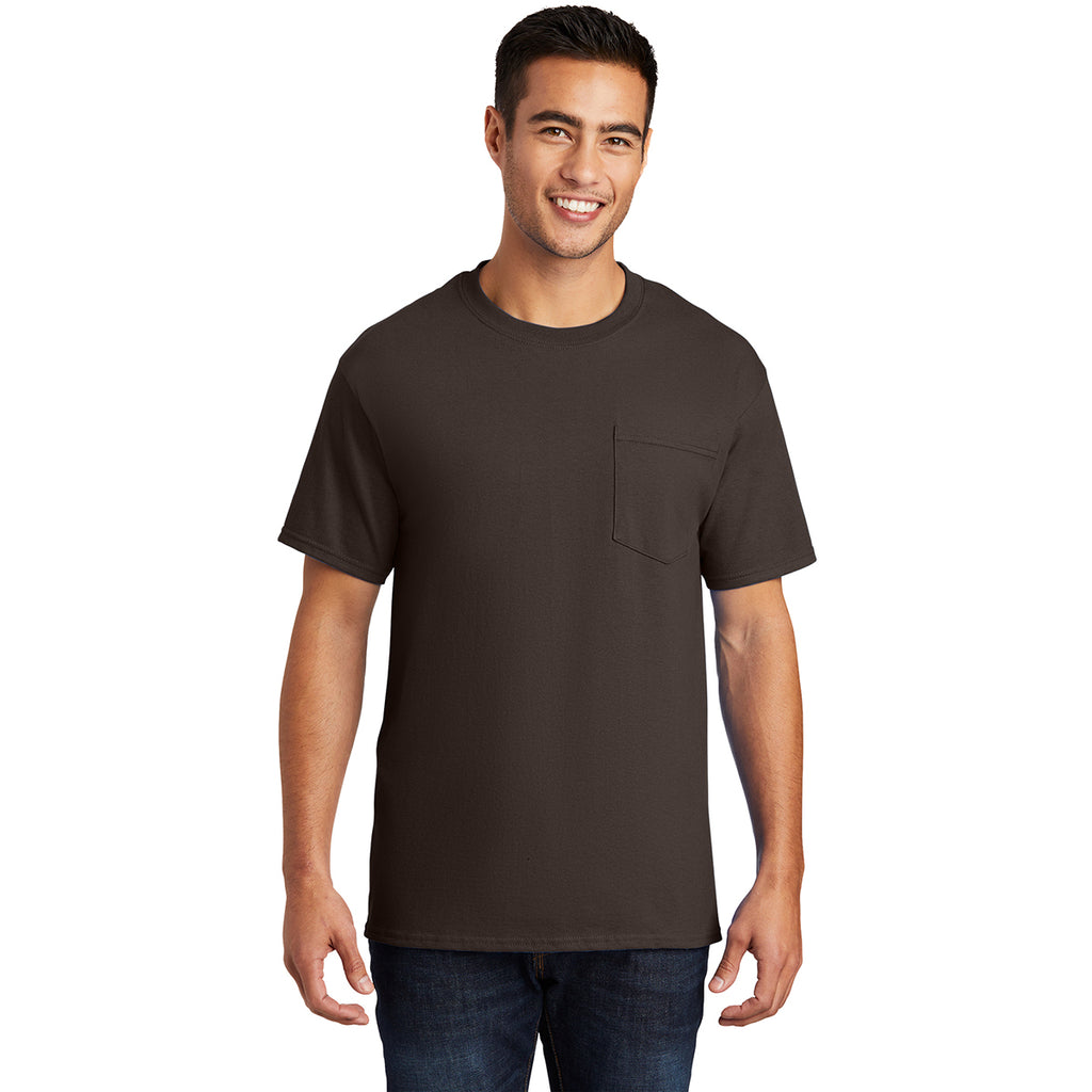 Port & Company Men's Brown Essential Pocket Tee