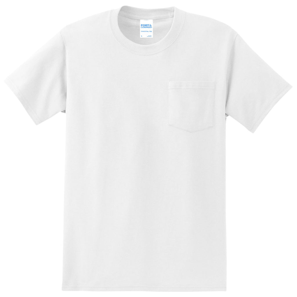 Port & Company Men's White Essential Pocket Tee