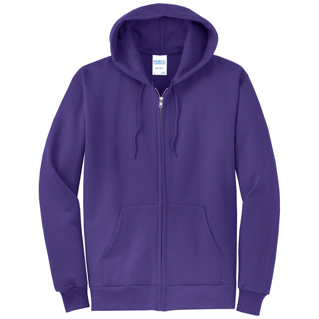 Port & Company Men's Purple Core Fleece Full-Zip Hooded Sweatshirt