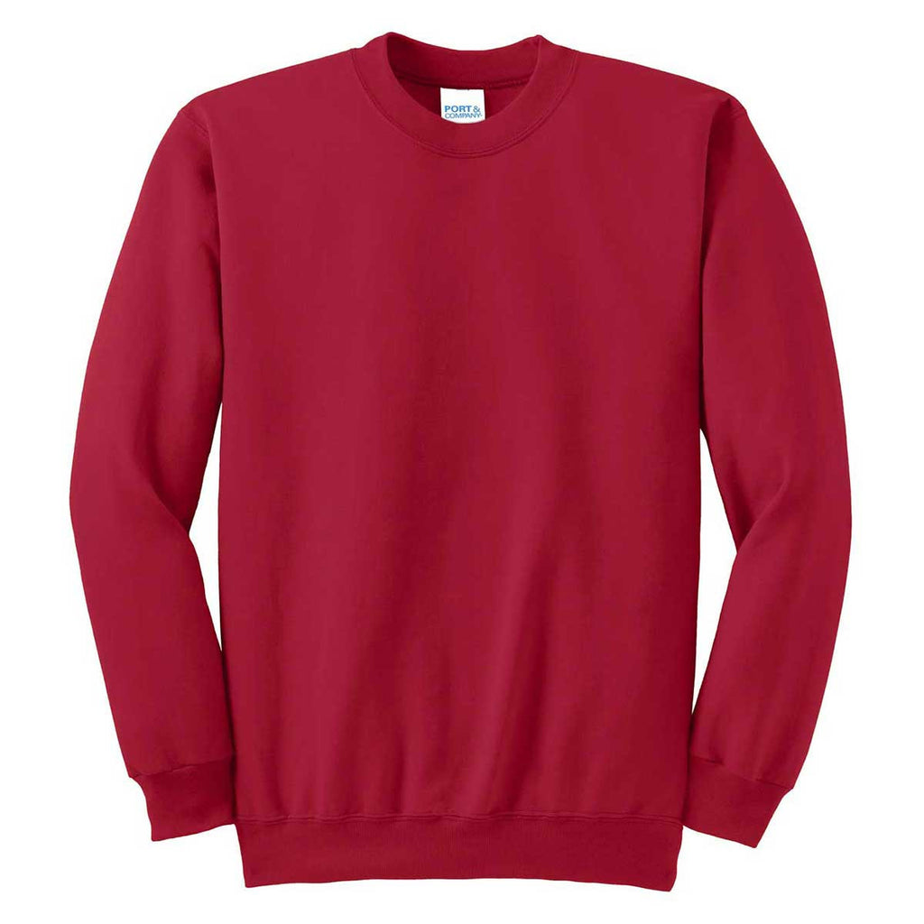 Crafted from a balanced cotton-polyester blend, this Port & Company Men's Red Tall Essential Fleece Crewneck Sweatshirt is as ready for relaxing upside-down on the sofa as it is the office. Incorporates all you need to achieve a contemporary yet casual look, ultra-soft cotton form, and crewneck. Pill-resistant finish ensures clean and long life. In sum, this one comes with a great versatility. Great for crews or teams by adding a custom logo imprint. Perfect for enhancing brand's corporate image by using this shirt as a giveaway to a potential customer with your logo and message on it.Highlights