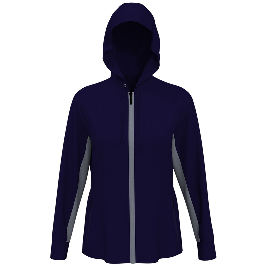 Perry Ellis Women's Peacoat Navy Full Zip Jacket with custom embroidery is the perfect option for outdoor events. This full-front zip jacket with contrasting patches on the sleeves and zipper is sleek and functional, whether running errands or enjoying an early morning workout. The water-repellent finish is ideal as warm-up gear, no matter what sport you enjoy.Corresponding Men's Style: Perry Ellis Men's Peacoat Navy Full Zip Jacket
