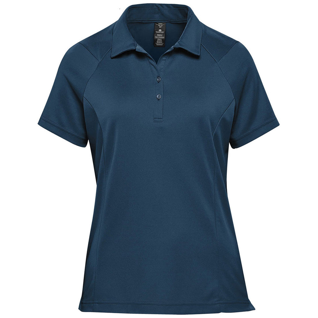 Stormtech Women's Navy Milano Sports Polo with custom embroidery will have you turning heads. This fitted, sports polo is made of 100% polyester double pique fabric with mechanical stretch so you have freedom of movement whether at the driving range, tennis club, or work. Add a company logo to the stunning polo to use as a uniform or add to your logoed apparel options for clientele. A unique design creates a custom gift that will be a welcome addition to most any wardrobe. This is not a polo you want to ignore. Place an order today to make sure these are available for the upcoming season.Highlights