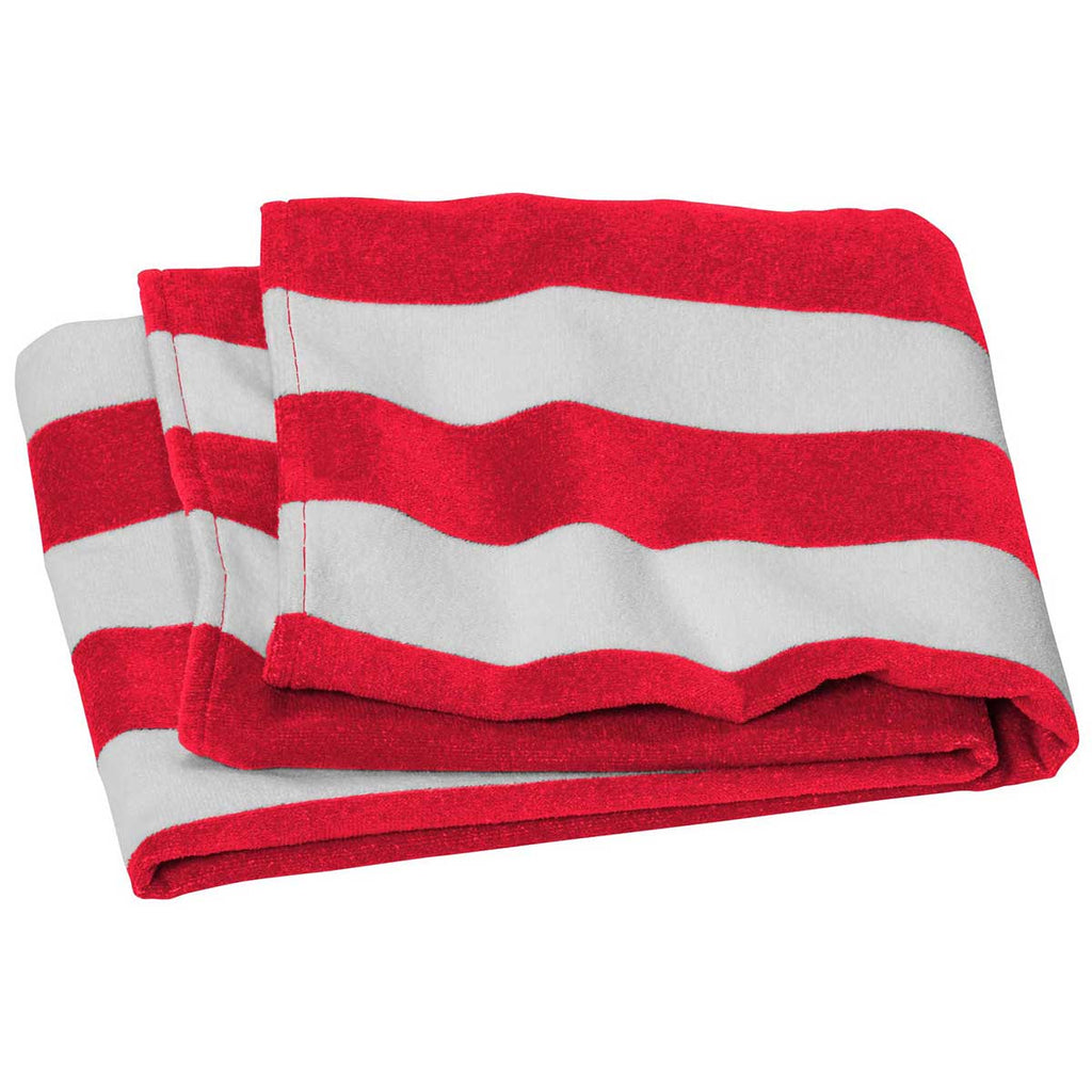 Port Authority Red Value Cabana Stripe Beach Towel