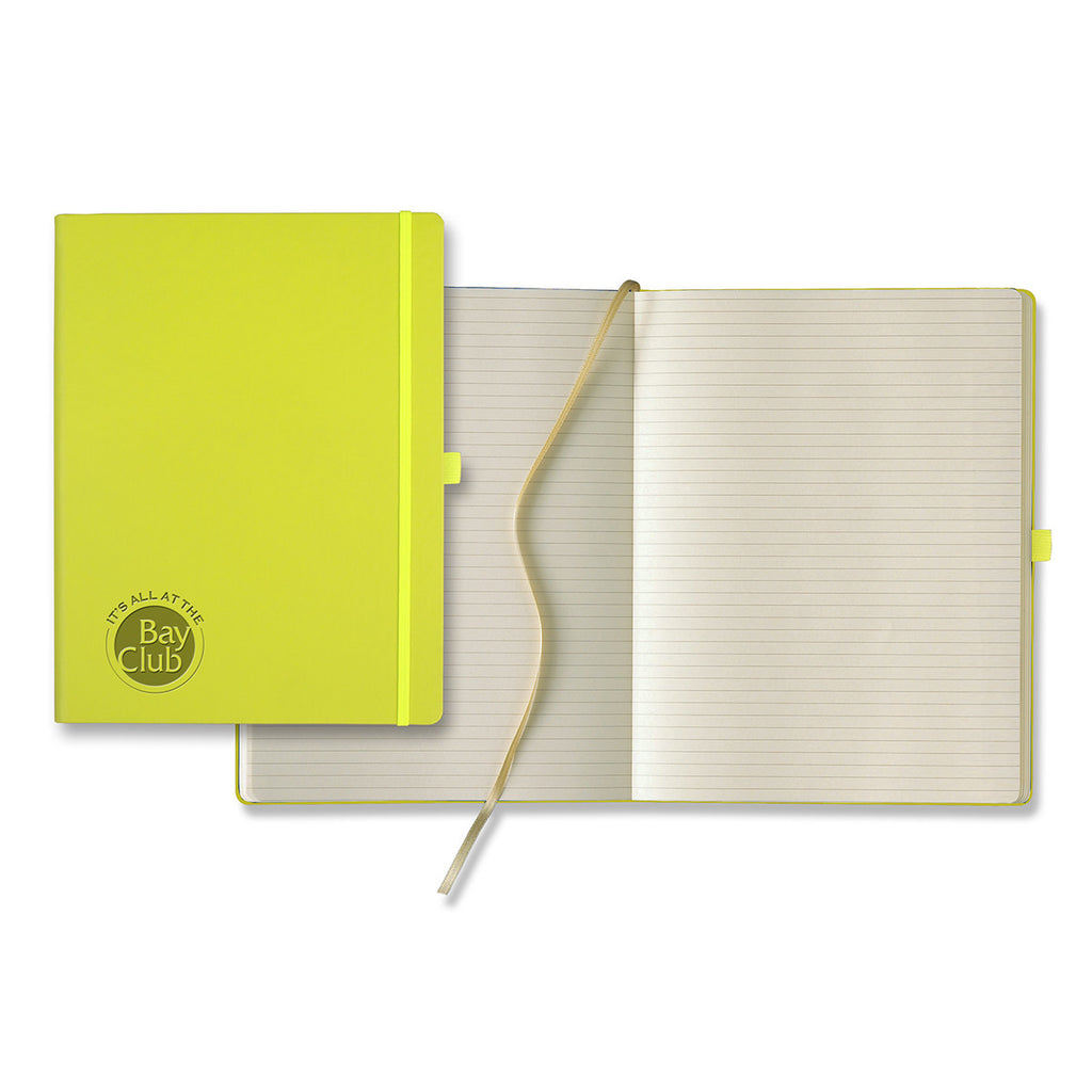 Tucson Large Ivory journal flaunts well-earned reputation for its stately silhouette courtesy of pen loop, elastic closure, 240 gray-lined pages and leather-like cover. This notebook will deliver a clear message to its recipients: "I mean business." It can be customized with a detail of your company's custom logo.