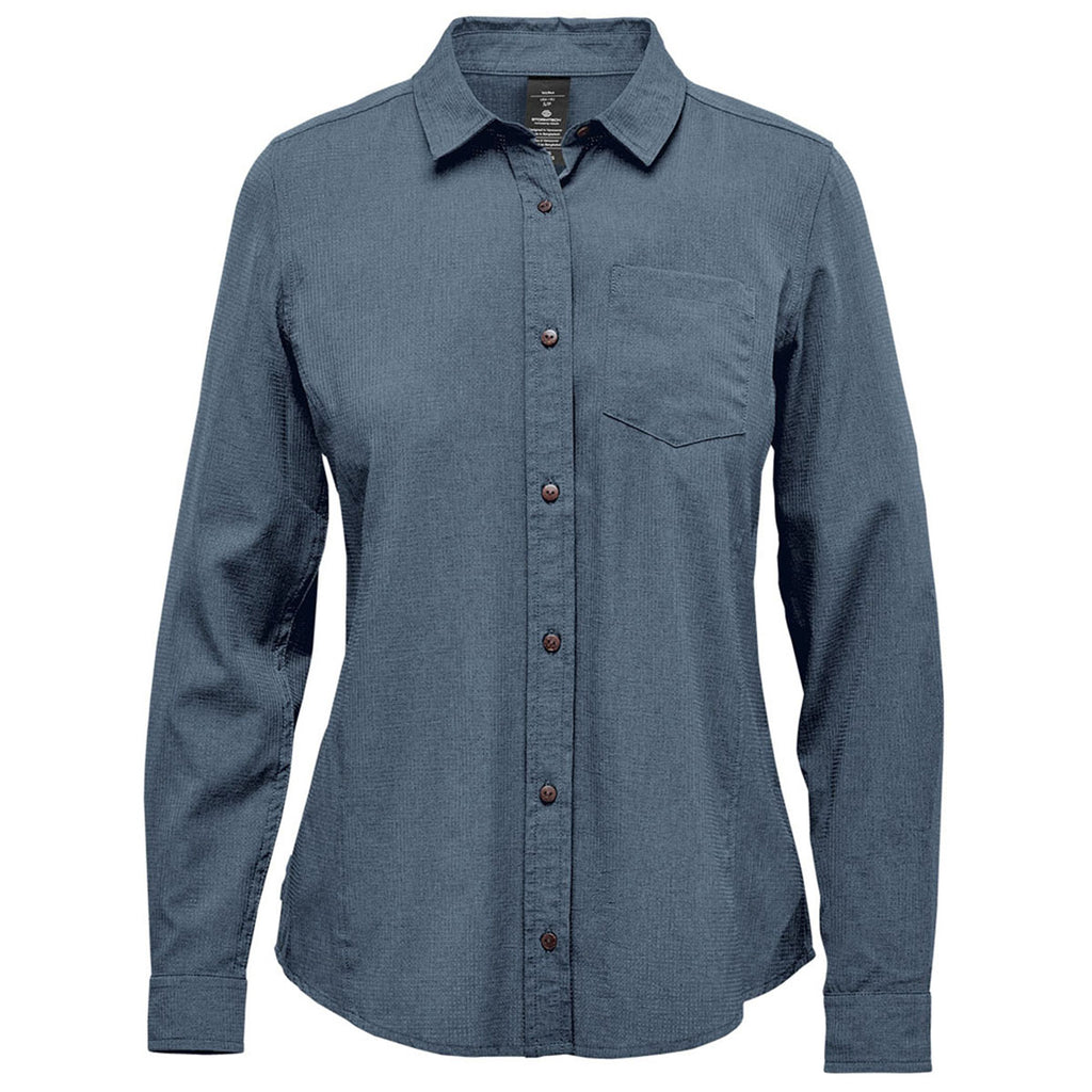 Stormtech Women's Retro Blue Azores Quick Dry Long Sleeve Shirt with a corporate logo is the ideal way to enjoy an ultra-lightweight look that works in the professional and home worlds. The classic button-up front is contoured for comfort and stretchy for all-day wear. It is perfect for servers or can be dressed up for office wear.Highlights