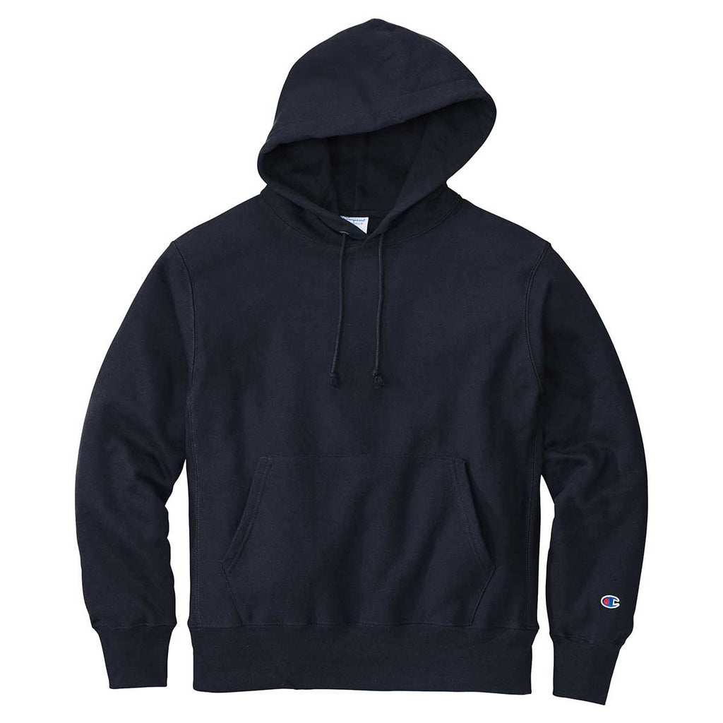 A comfy sweatshirt is a must have. Create a custom look with the Champion Men's Navy Reverse Weave Hooded Sweatshirt. Made in the traditional form of hooded sweatshirts, this cotton rich poly blend is warm, comfortable, and perfect for layering. Add a heat transfer of your choosing to the reverse weave that resists shrinkage to show off company affiliation or to stand out at team events. The front pouch pocket is great for storing your phone and keys or keeping your hands warn as you hang out around the campfire or head to the gym to work out.