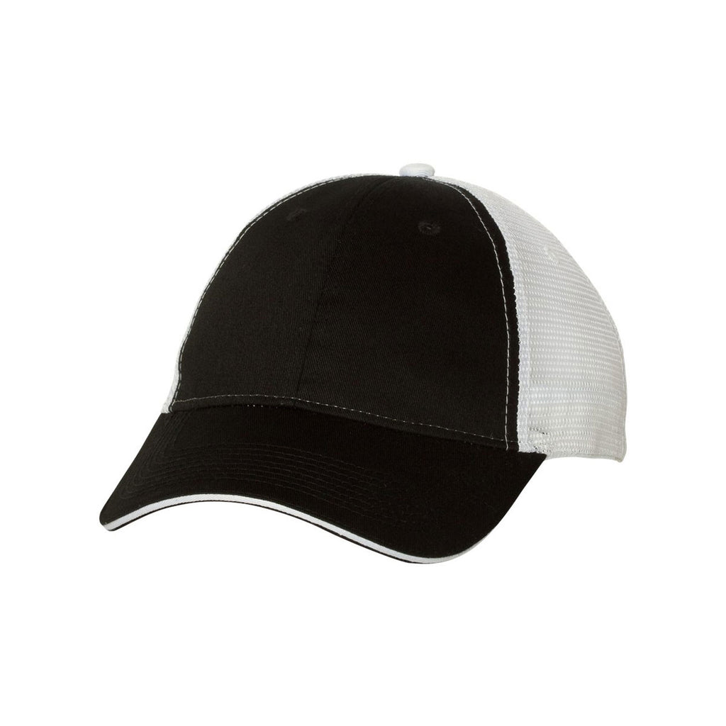 When you need headwear for a long trek cross country, put on the custom logoed Valucap Black/White Sandwich Trucker Cap. Designed with a cotton and polyester blend, the super soft cap resists rips and tears to keep the headwear in pristine condition for years to come. One-hundred percent polyester mesh in the back of the hat helps circulate air to keep you comfortably cool. Structured six panels present a professional appearance for customers who apply their skills outdoors. The mid profile design keeps the sun out of your eyes during corporate softball games. Attach your company logo to get the word out about your products and services.Highlights