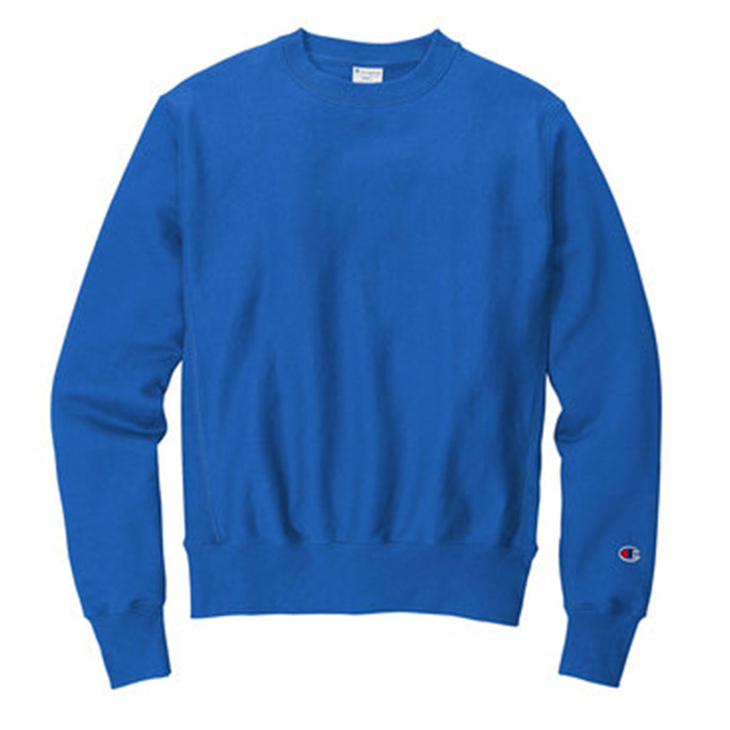 Hit the gym or hang out with friends in a custom Champion Men's Athletic Royal Reverse Weave Crewneck Sweatshirt. The comfortable cotton rich poly fleece can easily carry the heat transfer you choose. Perfect for layering over a tee shirt, this crewneck has a rib neck, side panels, and sleeve cuffs and hem for a flattering look for most. Add a company logo to use as company uniforms for those that need to be outdoors, but remain professional or add a team name for team event support. An embroidered Champion C rests comfortably on the cuff as a sign of quality. The perfect affordable option to meet the needs you have in the sweatshirt realm.