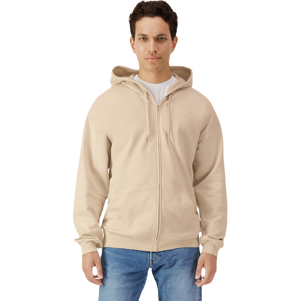 Get active with custom embroidery on the Gildan Unisex Sand Softstyle Fleece Hooded Sweatshirt. This full-zip hooded sweatshirt is great as an outer layer when jogging, working out, doing chores, or just chilling with friends. The classic fit and seamless body will make this an instant favorite. Place an order before these sell out.Highlights