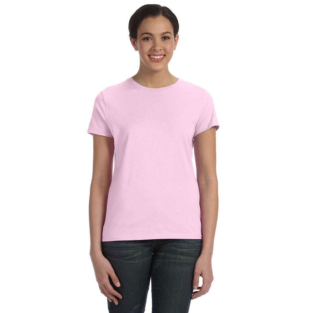 Look and feel great in a custom Hanes Women's Pale Pink 4.5 oz. 100% Ringspun Cotton nano-T T-Shirt that everyone will want. Ideal as a custom logo women's t-shirt to use as employee apparel or to show company and sales team support at the next trade show. Comfortable enough to be worn daily, but clean cut enough to be worn at a golf event as a participant or viewer. Your company logo will stand out against one of the many color choices. The contoured and side seamed shape offers a feminine look while remaining professional. Great for layering or wearing alone, the possibilities are endless.Highlights