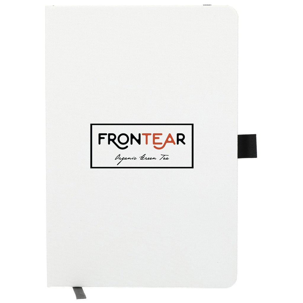 Your brand's custom logo or design will make a statement when it's added to the Bullet Black Recycled Bamboo Fiber Bound Notebook. Sleek and simple in design, this portable office accessory measures 5.5" x 8.5" and includes elastic closure, a ribbon page marker, and 80 lined pages within.