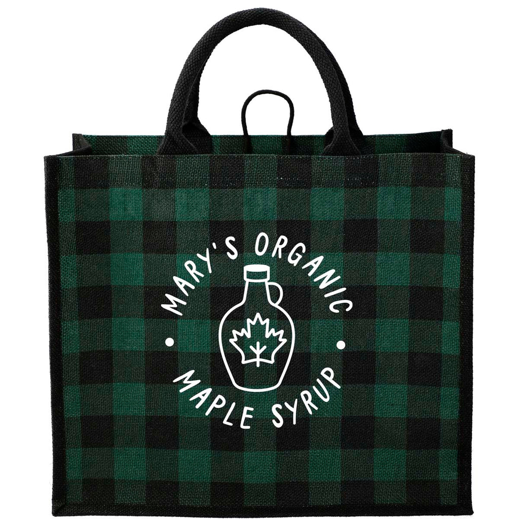 Love plaid-printed outfits? This custom Bullet Green Buffalo Plaid Printed Jute Tote will definitely tug at your heartstrings as well! This tote has an open main compartment for easy loading and unloading, and is trendy enough to look great in any season. Fashion some great event giveaways or employee gifts out of these totes - add your custom logo to match the bag to your company's style!The minimum order for this product is 100 pieces.