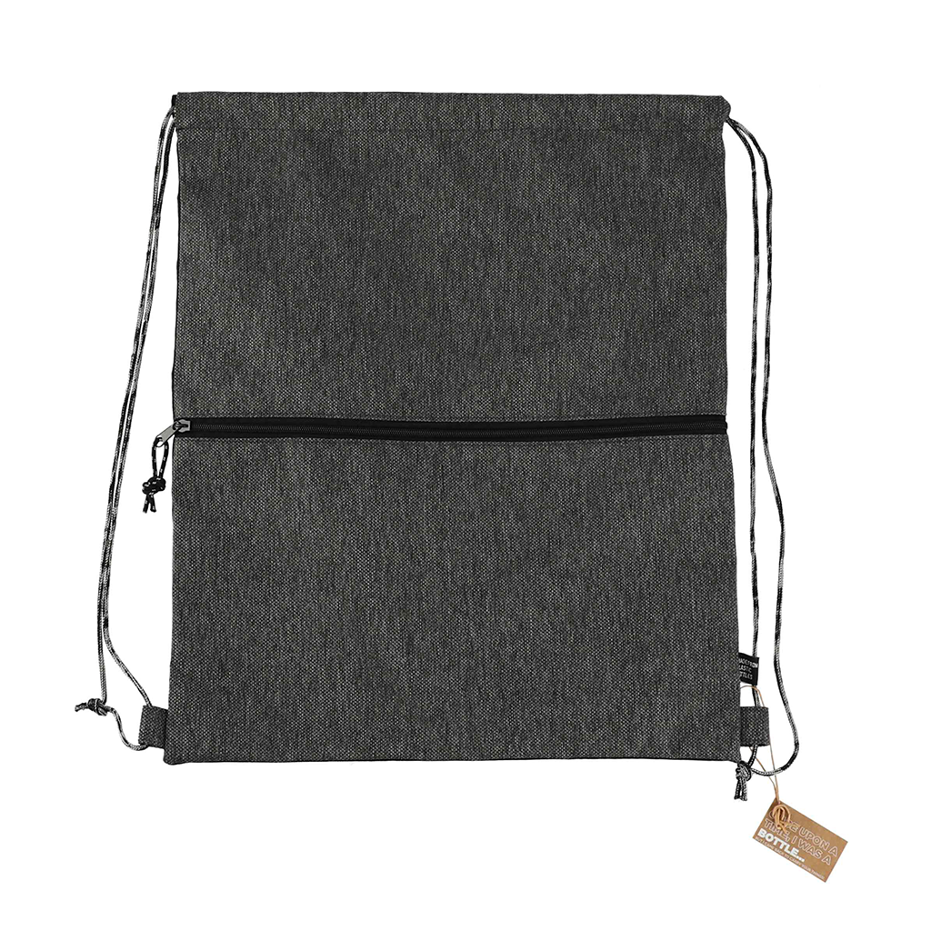 - Made with RPET from 100% recycled water bottles, this bag includes a zippered front pocket and a cinch closure main compartment.