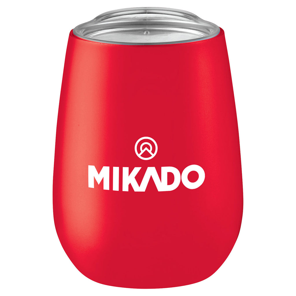 The Bullet Red Neo 10oz Vacuum Insulated Cup has a slim stemless body with a press-on lid that affixes itself to the vessel in moments. The design, which includes a special logo accent, keeps all drinks hot and cold for hours. The design is suitable for most promotional efforts and can make for a nice holiday gift.
