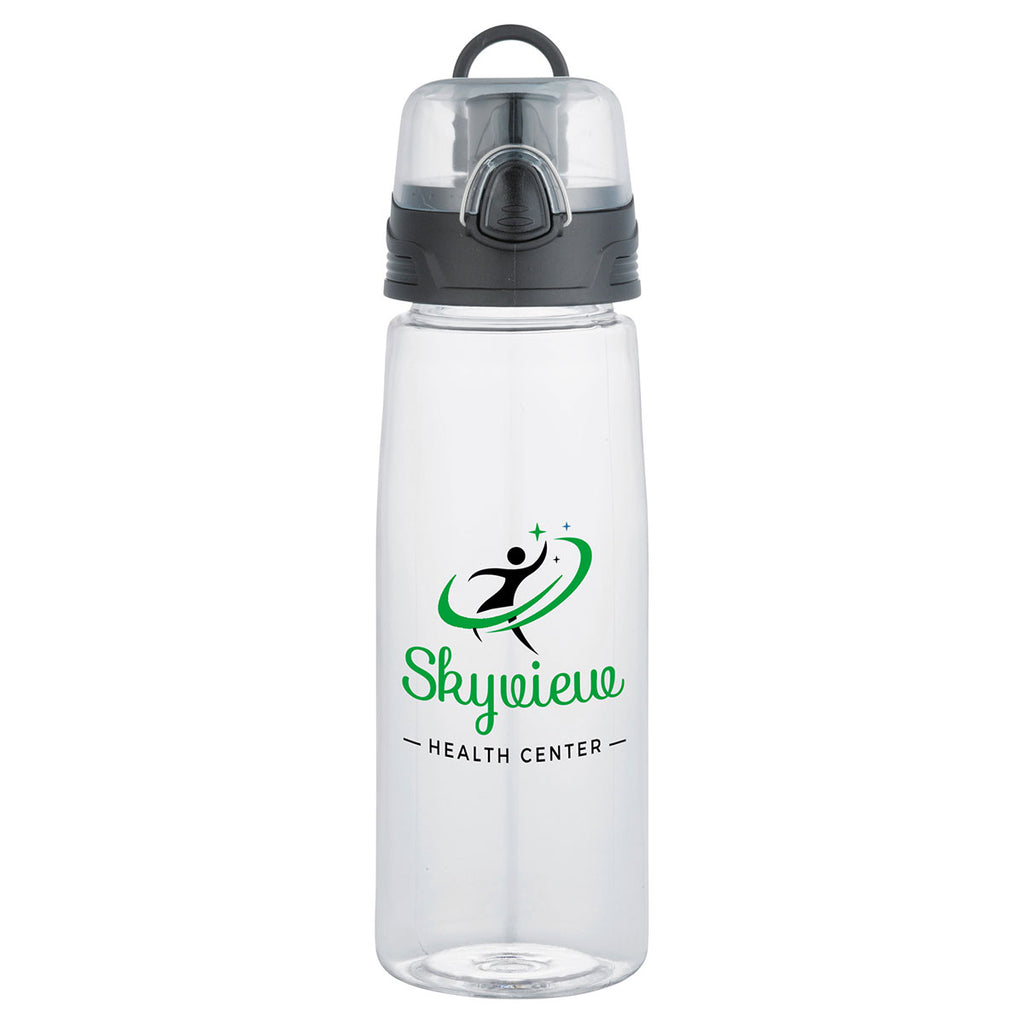 Enjoy the multi-part design of the Bullet Clear Capri 25oz Tritan Sports Bottle. The clear BPA-free surface includes a press-button drinking lid that flips open. The spout offers a clear port for enjoying water or anything else. Add your corporate logo to this bottle and offer the unit as a gift during a fitness-related event in the workplace.