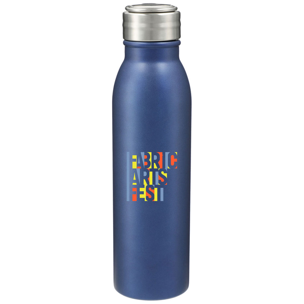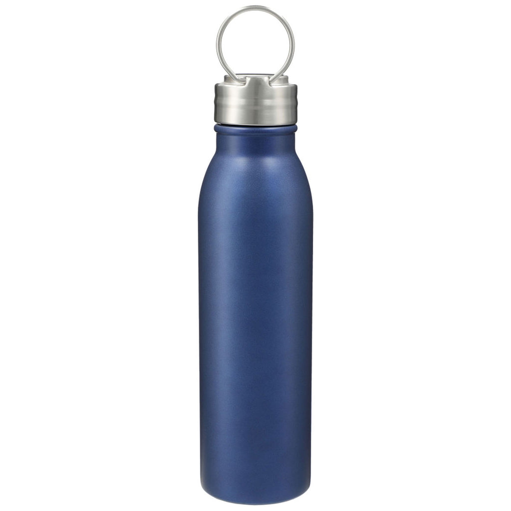 Enjoy your company logo on the Bullet Navy Vida 24oz Stainless Steel Bottle that is made for fun, working out, and adventure. The stainless steel bottle has a screw on lid and stainless steel loop to attach to a backpack or belt loop as needed with a simple carabiner. A wonderful employee appreciation gift for any occasion or something to set out at trade shows to encourage an impulse buy. The large 24 oz bottle is perfect for work to keep drinks warm or cool as needed throughout the day so you can focus on other things. Place an order for several to always have this bottle on hand.