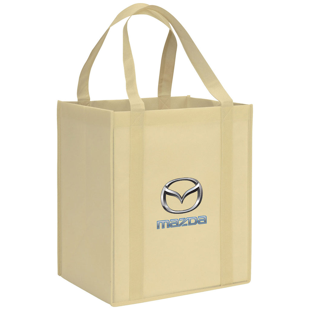 The Bullet Cream Hercules Non-Woven Grocery Tote can be an emphatic promotional tool for your company. This is a sturdy, re-usable grocery bag, and your company name will really stand out as it decorates this box-like shape. Your brand will get lots of exposure when this logoed bag is used again and again.The minimum order for this product is 100 pieces.