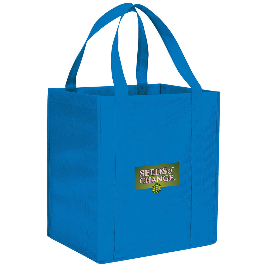 The Bullet Process Blue Hercules Non-Woven Grocery Tote can be an emphatic promotional tool for your company. This is a sturdy, re-usable grocery bag, and your company name will really stand out as it decorates this box-like shape. Your brand will get lots of exposure when this logoed bag is used again and again.The minimum order for this product is 100 pieces.