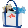 The Bullet White with Royal Blue Trim Large Boat Tote is available in various color combinations that can help your corporate logo stand out. This bag is perfect for a day at the beach or a trip to the grocery store, making it a nice logoed promotional tool that boosts your brand recognition in numerous settings.