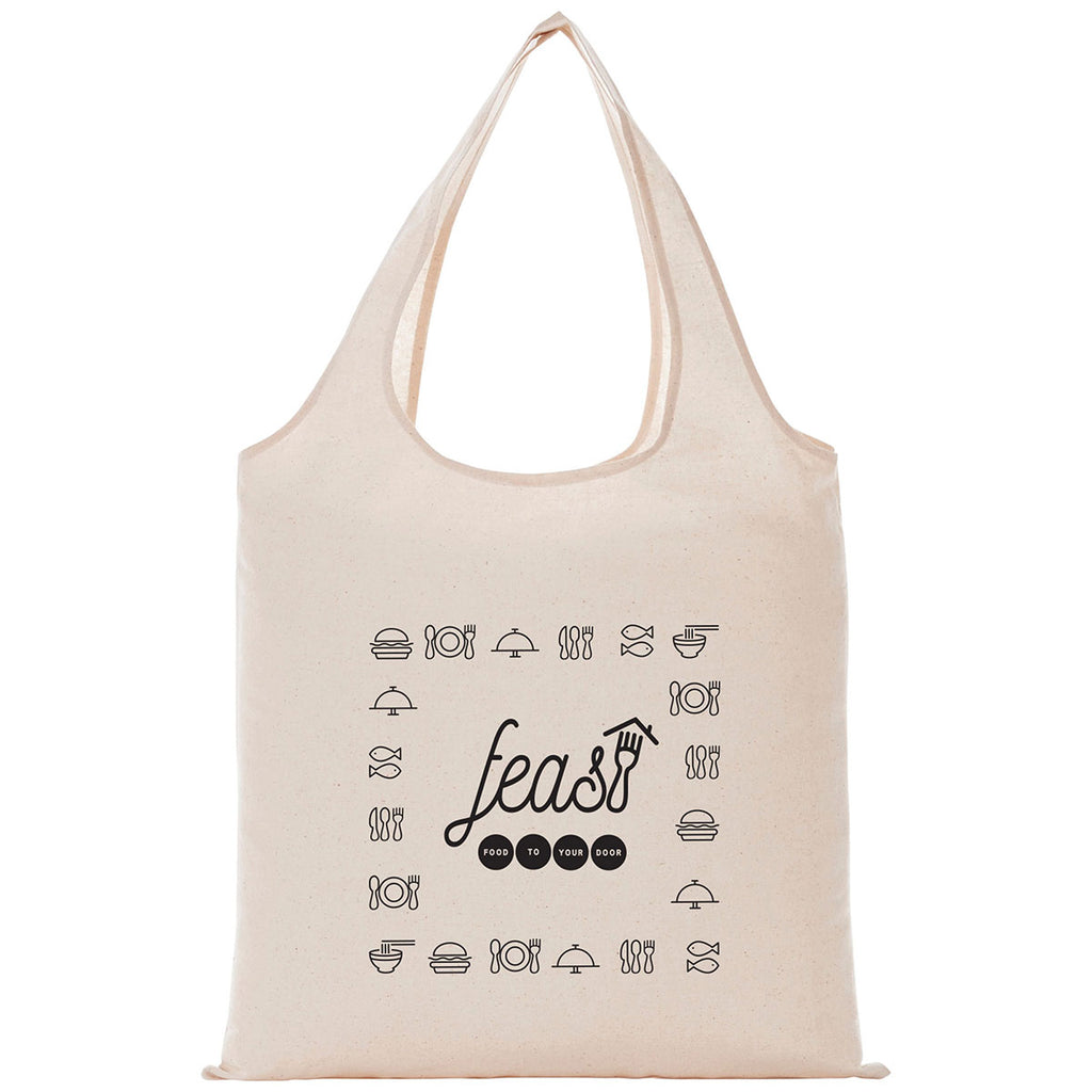The Bullet Natural Grocery 5oz Cotton Canvas Tote is a plain, practical bag that provides a blank canvas for your custom logo. That can make this logoed bag promotional tool when you hand out a bunch as employee gifts. Your workers will use it again and again at the supermarket, promoting your brand.