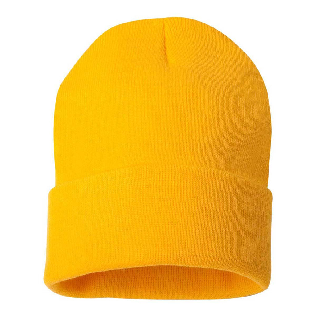 Create a custom look in multiple colors with the custom Sportsman Gold 12" Knit Beanie. Made of 100% acrylic knit, this beanie has an adjustable cuff that can be worn as you prefer. Add a company logo to use these embroidered beanies as part of employee apparel for those who need to create a look that best represents your company. Add a corporate logo and choose a bright color for those who need headwear while working outdoors. These make an ideal gift for those in your company or for fans of sporting events that want to show local team spirit.Highlights