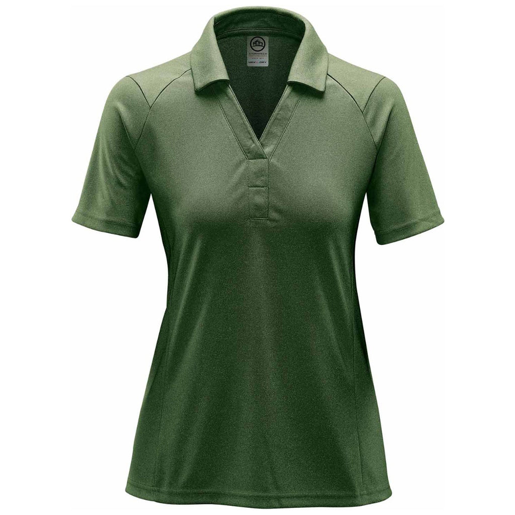 Enjoy all your outdoor activities in a custom logo Stormtech Women's Earth Mistral Heathered Polo in five beautiful colors. The double pique heathered polo offers an open v-neck with a combination shoulder allows for freedom of movement whether playing a round of golf or headed to the company outing. Add a corporate logo to these polos with buttonless placket to use as employee apparel or highly admirable corporate gifts. The H2X-DRY technology wicks away moisture as you enjoy your choice of activity at the next company outing. Place your order today in your choice of colors and the custom logo of your choosing.